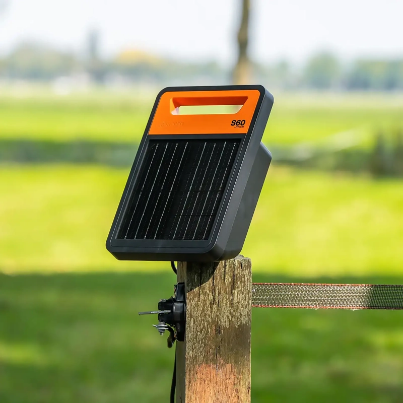 De Gallagher S60li is een innovatief schrikdraadapparaat op zonne-energie. Door de ingebouwde lithium-accu is dit apparaat 60% lichter en compacter dan vergelijkbare modellen, waardoor het naast draagbaarder ook krachtiger en betrouwbaarder is. De S60li is dankzij de speciale wildstand ook geschikt voor het weren van wilde dieren. Met een kracht van 0,6 joule is het geschikt voor afrasteringen tot 6 km en schapennetten.