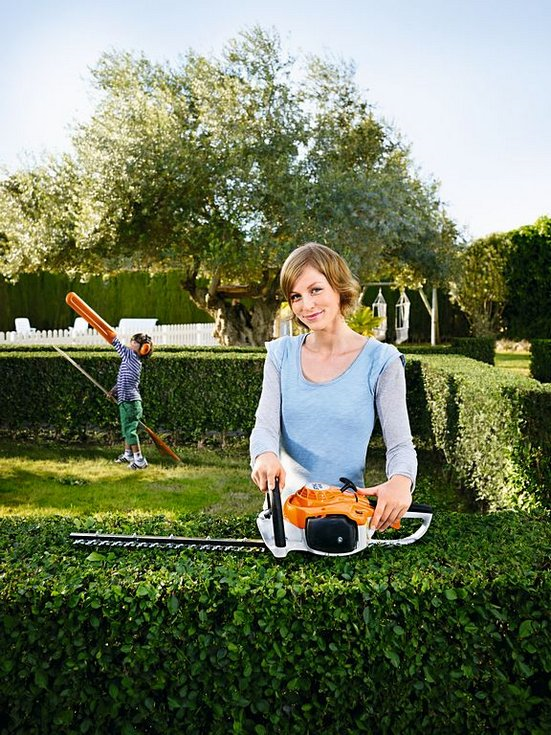 Lichte benzine heggenschaar. Ideaal voor hoveniers en landbouwers. STIHL antivibratiesysteem, STIHL ErgoStart, longlife-luchtfiltersysteem, 2-MIX-motor, gereedschapsloze tankdop, dubbelzijdig geslepen messen, opgeschroefde zwaardbeschermer tegen snijwonden.