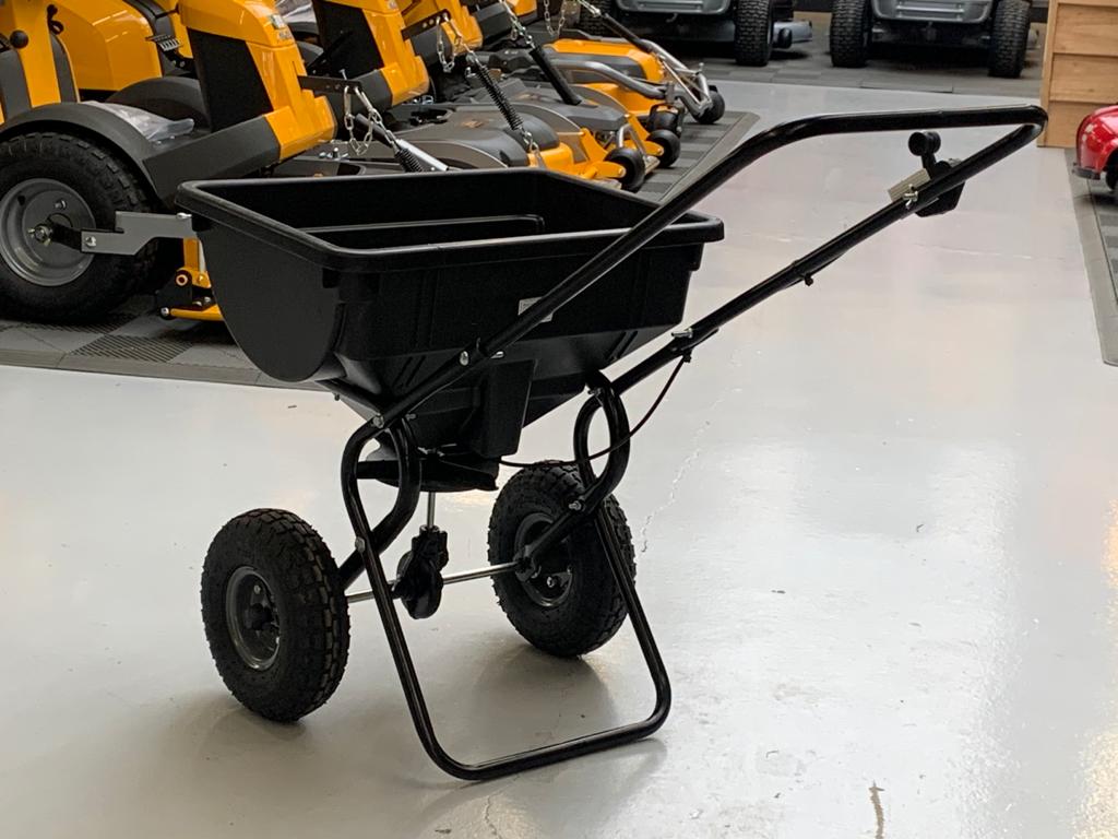 | Technische informatie | – Trechterinhoud 27 liter (droog)/38 liter. – Polyestertrechter en strooiplaat roestvast. – Strooibreedte tot 3 m. – Met luchtbanden. – Gewicht: 9 kg. – Afmetingen van gemonteerd apparaat: 89 x 56 x 84 cm. |