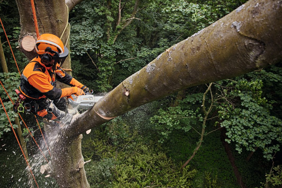 Krachtige accukettingzaag voor de boomverzorging in geluidsgevoelige locaties. Voor gebruikers met opleiding in boomverzorging. Set met accu en lader