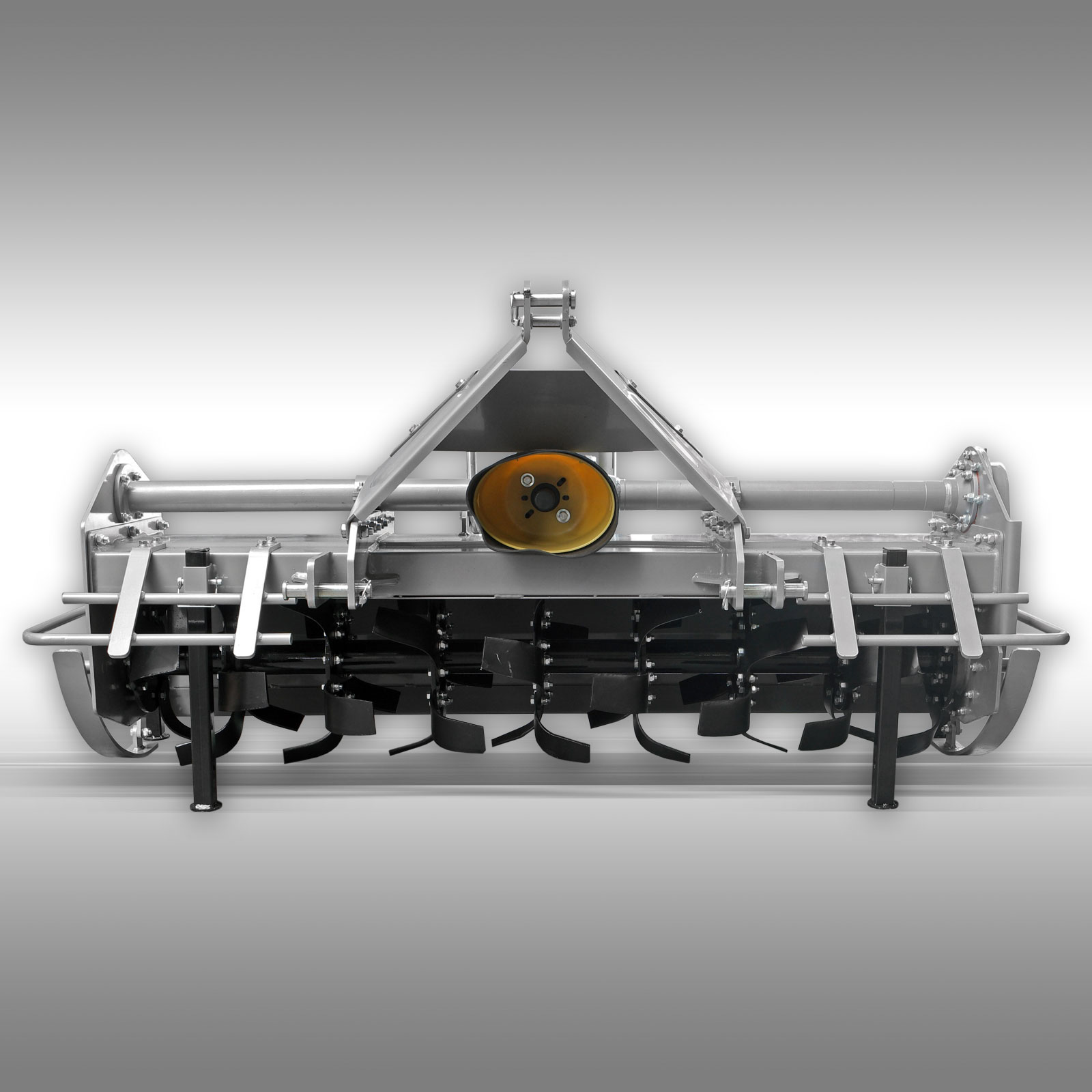 De grondfrees wordt geleverd in een stevig stalen frame. Voor de eindmontage moet u rekenen op ca. 1-2 uur werk. Er wordt een Duitse gebruiksaanwijzing meegeleverd evenals een opengewerkte tekening. De montage is meestal geen probleem, als er hulp nodig is, staan wij uiteraard telefonisch tot uw beschikking. De tandwielkasten zijn droog en niet gevuld. Beide tandwielkasten moeten voor de ingebruikname worden gevuld met versnellingsbakolie (80W90). De bovenste tandwielkast met ca. 4 liter en de zijdelingse tandwielkast met ca. 3 liter!