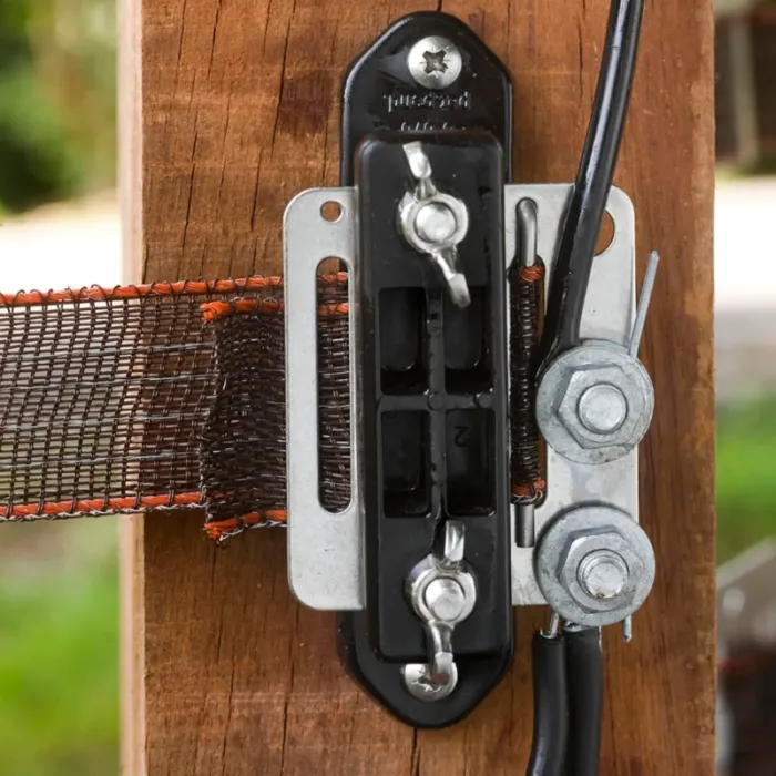 De isolator bestaat uit twee delen: het eerste deel bevestig je met twee schroeven op de paal, het tweede deel wordt met vleugelmoeren op het eerste deel gezet. Tussen deze twee delen wordt het lint geklemd. De TurboLine isolator is geschikt voor lint tot 40 mm breed.